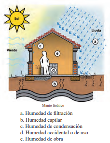 En una edificación se pueden reconocercinco fuentes de humedad, todas ellas de carácter físico, las cuales son:
