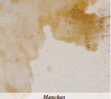 Son zonas sombreadas en las superficies de muros, pisos, cielo rasos que aparecen por la presencia de agua y cambian la tonalidad del color de éstas. Constituyen el primer paso para la aparición de otras expresiones tales como eflorescencias, pátinas, óxidos. Las manchas suelen aparecer por la acción combinada de humedades internas y el asoleamiento de la fachada.